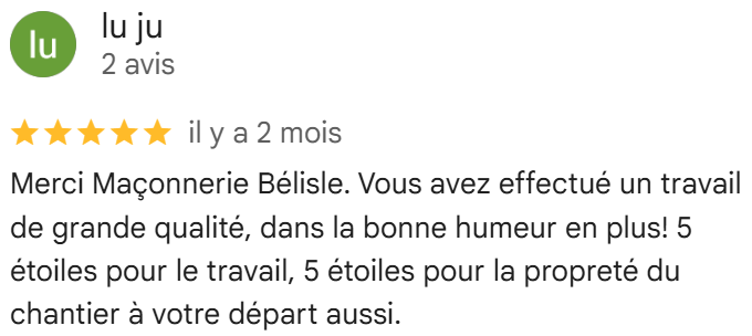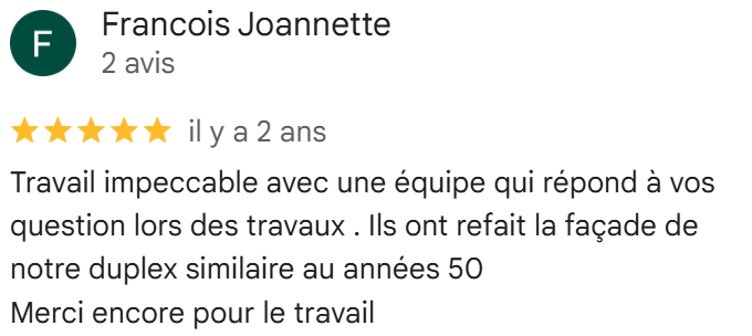 Notre entreprise maintient une note moyenne de 4,8 ★ sur Google, reflet de la satisfaction de nos clients.